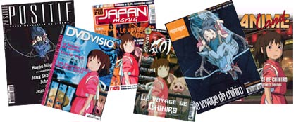 A l'occasion du Festival nouvelles images du Japon en 2001, la presse a eu l'occasion d'interviewer Hayao Miyazaki et de préparer un terrain médiatique favorable à la promotion du Voyage de Chihiro en France. Deux mois avant l'exploitation du film en France, on pouvait déjà lire des articles sur Miyazaki, le studio Ghibli ainsi que sur le film. Au moment de la sortie, la critique est quasi unanime : les journalistes de la presse écrite encense littéralement le film de Miyazaki. Les magazines spécialisés sur le cinéma consacrent des dossiers complets sur le film et son réalisateur. Le voyage de Chihiro fait la une de plusieurs revues et les chaînes de TV généralistes proposent de nombreux sujets sur le réalisateur nippon. C'est la première fois en France qu'on voit un tel accueil pour une œuvre du studio, mais aussi sur un film d'animation japonais.