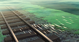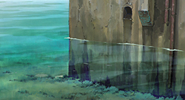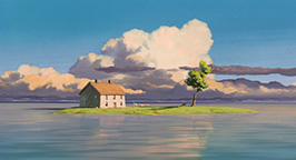 Un autre challenge significatif relevé par l'équipe 3D du studio Ghibli est la création pour la mer d'une surface réaliste et toujours changeante. Il a fallu le développement interne d'un autre procédé d'ombrage de texture 2D, et l'utilisation de plusieurs outils d'ombrage et d'éclairage pour simuler les réflexions et réfractions à la surface de l'eau.