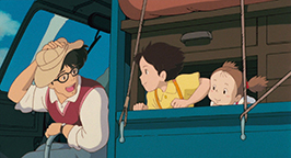 Le vrai bus finit par arriver. Monsieur Kusakabe est surpris de trouver ses deux filles à l'arrêt et se confond en excuse pour son retard. Toutes excitées, les fillettes ne l'écoutent pas et commencent à lui raconter leur extraordinaire aventure de façon désordonnée. Monsieur Kusakabe n'y comprend rien. La nuit est tombée depuis longtemps quand la famille repart vers la maison. Satsuki écrit une nouvelle lettre à sa mère et lui fait part de ses aventures. Elle lui explique que le cadeau de Totoro est un paquet de graines qu'elles se sont empressées de planter dans le jardin. Mei les arrosent et les surveillent tous les jours. Mais pour l'instant, rien ne pousse.