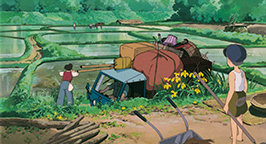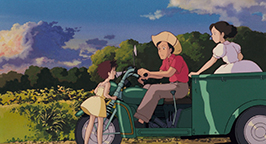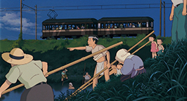 C'est sur la chanson Tonari no Totoro et sur une série d'images fixes que se déroule le générique de fin. Les vignettes suggèrent les événements qui vont naturellement suivre ce dénouement heureux : le retour de Madame Kusakabe au foyer, la vie scolaire de Satsuki, les amis et les jeux dans la campagne. Les esprits de la forêt sont toujours là, et même si Satsuki et Mei ne les ont pas oublié, les images laissent à penser que les fillettes et les créatures ne se recroiseront plus. La crise familiale résolue, la douce protection de Totoro n'est plus nécessaire.