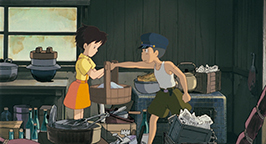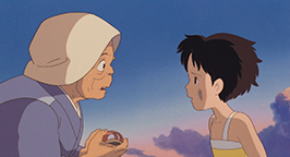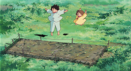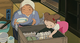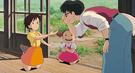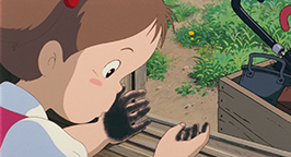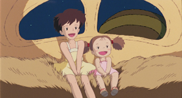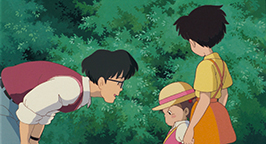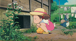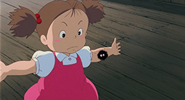 Cette histoire réglée, l'emménagement et le grand nettoyage se poursuivent avec l'aide de Grand-mère jusqu'en fin d'après midi. C'est à ce moment de la journée que Kanta apparaît. Il est venu apporter à manger de la part de sa mère. Tandis qu'il pénètre dans la maison des Kusakabe, Satsuki surgit. Il refuse de parler à une « fille ». Avec défi, il lui tend le panier avant de déguerpir en quatrième vitesse. Au loin, il lance à la jeune fille que elle et sa famille viennent d'emménager dans une maison hantée, avant de s'éloigner en courant, content de sa farce. Satsuki le regarde s'enfuir les yeux écarquillés et, reprenant des esprits, lui tire la langue.