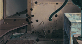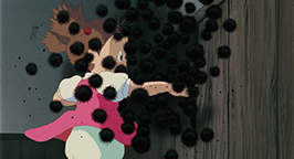 L'état de délabrement avancé de la maison, par certains endroits, laisse imaginer à Satsuki que le lieu est hanté. Cette première impression est renforcée lorsqu'à l'intérieur de la maison, brillant au milieu de la pièce principale, elle découvre des glands qui semblent apparus de nulle part. Quelques instants plus tard, c'est en ouvrant la porte arrière de la demeure, qu'elle assiste avec sa sœur à un nouveau phénomène étrange : elles font fuir de mystérieuses petites boules noires dans les fissures des murs ! Craintives, les deux fillettes exorcisent leur peur en poussant un grand cri, espérant bien faire peur à tout ce qui pourrait encore se trouver dans la pièce. Alerté par le cri, Monsieur Kusakabe apparaît par une autre porte. Les fillettes lui font part de leur crainte d'avoir emménagé dans une maison hantée. Leur père pense qu'il y a peu de chance qu'elles aient vu des fantômes mais plutôt des « noiraudes » comme dans les livres d'images. Les fillettes sont enchantées par son explication rassurante.