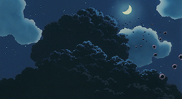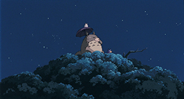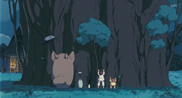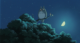 Les graines n'ont toujours pas poussé. Mei confit ses inquiétudes à son père qui termine d'installer la moustiquaire pour ces premières soirées d'été. Dans la nuit, Satsuki est réveillée par un bruit étrange. La nuit est éclairée par la pleine lune et au dehors, elle aperçoit Totoro et ses compagnons de taille plus modeste en train de danser dans le jardin tout autour des graines. Les fillettes se joignent à leur danse rituelle. Totoro se concentre et rassemble toutes ses forces pour tirer les pousses hors du sol. Soudain, le charme opère : une graine se met à germer, puis une autre, puis encore une autre... Les fillettes se joignent à son effort et les jeunes pousses se mettent alors à grandir. Des tiges de plus en plus grosses sortent du sol à une vitesse phénoménale. Elles se rassemblent pour bientôt former un arbrisseau, qui à son tour continue de croître, pour finir par former un arbre gigantesque qui dépasse le toit de la maison !