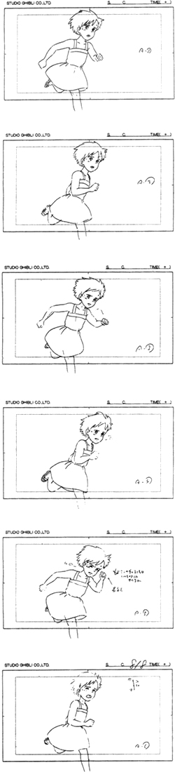 A partir du 11er juillet et les jours qui vont suivre, Miyazaki indique ses attentes, les points importants, les sentiments à faire ressortir sur chaque plan aux animateurs clefs des parties A et B. Au milieu de l'été, le storyboard de la partie C s'achève (247 plans pour 1213 secondes).