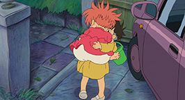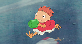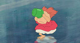 Finalement, Miyazaki exprime les sentiments de Ponyo grâce à la crispation générale de ses pieds et la position de ses doigts de pieds, ainsi qu’à la forme du pantalon de Sôsuke, gonflé dans le bas mais serré au niveau du bassin. « Retoucher l’animation signifie également autre chose d’important. Quand je vérifie et dessine des lignes, petit à petit je finis par comprendre ce que les personnages pensent ou comment ils se comportent. »