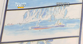 Miyazaki a également expliqué à ses collaborateurs comment il imaginait voir bouger les poissons d’eau, ces étranges masses d’eau animées, pour qu’ils comprennent bien l’objectif esthétique de ces scènes. Dans toutes ces scènes, ce n’est pas la stricte représentation exacte de la forme d’un poisson ou de l’eau qui est importante, mais c’est l’idée, la sensation de matière en mouvement qui doit ressortir ici et frapper le spectateur.