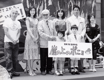 C’est le 5 mai 2009 (le jour des enfants au Japon), à l’occasion d’une projection publique de Ponyo sur la falaise, à Shimanto, une petite ville rurale en préfecture de Kôchi, que le réalisateur s’est exprimé sur les particularités du générique de fin de son film.
