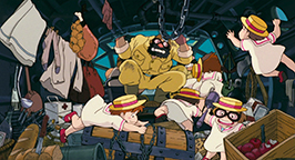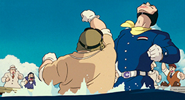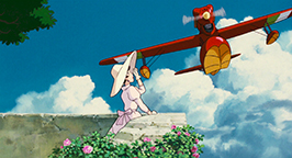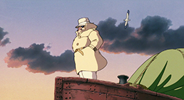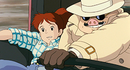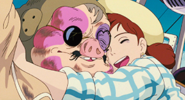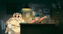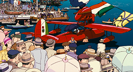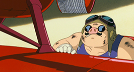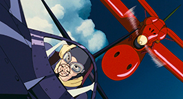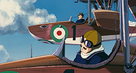 Le générique de fin est illustré par des croquis, représentant avec une certaine nostalgie des images des années 20-30 qui mettent en scène des cochons et leurs avions.