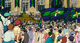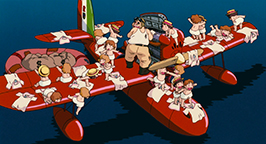 Après le film, Porco est accosté par Fio à bord d'un camion pour transporter l'avion achevé au lac. Il monte à ses côtés, mais très vite ils sont suivis par la police fasciste. Ce n'est qu'au prix d'une manœuvre osée que Porco arrive à s'en débarrasser. Il est évident que la famille Piccolo court de grands risques en aidant leur ami. Ils imaginent alors un plan pour tromper le Bureau : Fio part avec Porco mais eux affirmeront qu'elle a été prise en otage et qu'ils ont travaillé sous la menace.