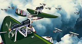 Porco proteste mais ne peut trouver mieux. La police s'apprêtant à investir l'usine, il faut sortir sans tarder et décoller du canal alors que l'hydravion n'a même pas encore été testé. Mais nos deux amis s'en sortent -non sans mal- et quittent Milan pour les îles de l'Adriatique. En route, ils sont rejoints par Feralin. Il les prévient que l'armée de l'air leur tend un filet et leur indique le chemin à suivre pour l'éviter.