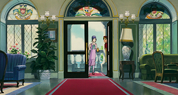 L'élégant hôtel Adriano brille comme un bijou au milieu d'une mer parfaitement bleue et le délicieux jardin privé de Gina est le cadre parfait pour une romance en conte de fée. Les deux reflètent la grâce et la beauté de la jeune femme et rendent sa résolution d'attendre Porco d'autant plus poignante. Enfin, les intérieurs, que ce soit de l'Hôtel ou des locaux de Piccolo, sont dessinés avec une minutie et une délicatesse rares, et sont mis en valeur par de magnifiques éclairages et jeux de lumières.