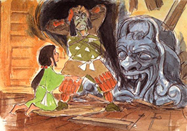 Un samourai surpris par la tempête, trouve refuge dans une caverne. Mais celle-ci se révèle être l'antre d'un monstre légendaire féroce et bestial. Pour sauver sa vie, le samourai est contraint d'accepter de lui livrer en mariage l'une de ses trois filles. De retour dans son foyer, il explique le pacte à sa femme qui, ne l'entendant pas de la même oreille, s'enfuit emmenant avec elle ses deux filles préférées. Décidément peu verni, le samourai se voit à nouveau forcé de signer un second pacte avec un esprit maléfique. Il lui vend son âme en échange de quoi l'esprit lui confère le pouvoir de défendre les siens face à un ennemi imminent. Investi d'une force diabolique, le samourai terrasse ses adversaires puis sous l'emprise de l'esprit, livre sa troisième fille au premier monstre, venu la lui réclamer.