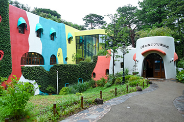 Le musée Ghibli est situé dans la banlieue de Tôkyô, à Mitaka, sur le terrain du parc national d'Inokashira. C'est le premier établissement à avoir bénéficié d'une dérogation pour pouvoir s'installer sur le territoire d'un parc national, et il y est parfaitement intégré à son environnement. Miyazaki a lui-même dessiné les plans, et a réussi à créer une architecture unique (le réalisateur dit avoir conçu le bâtiment comme s'il s'agissait d'un film). L'extérieur est composé uniquement de courbes et de couleurs pastels, ce qui donne un bâtiment aux formes douces, presque enfantines, tandis que l'intérieur est très raffiné : bois rares et vitraux y sont fréquents. A noter que le musée s'est vu confier l'entretien des plantes du parc, Miyazaki souhaitant que la relation entre le parc et le musée soit profitable aux deux.