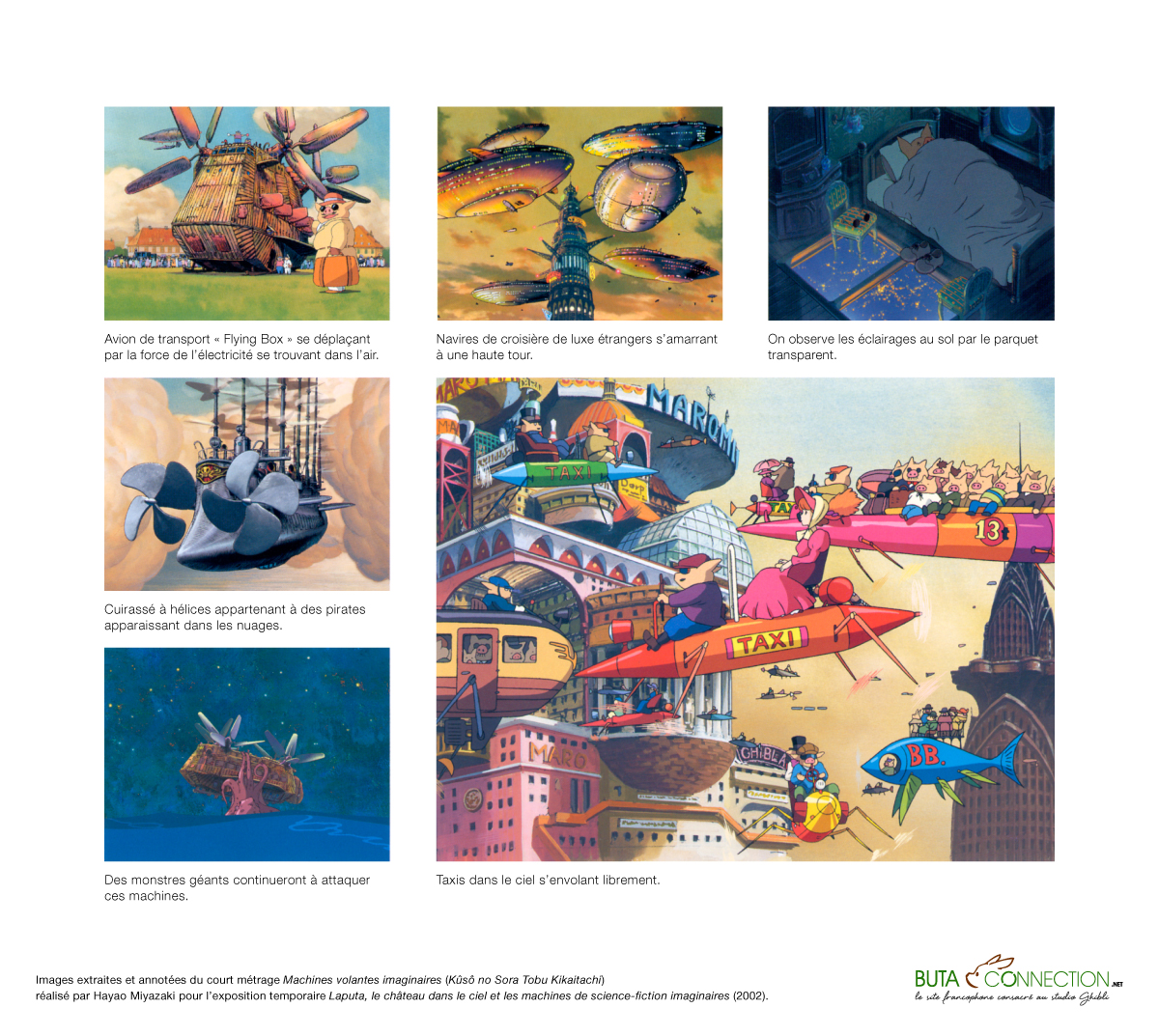 Sources : fascicule de l'exposition temporaire Laputa, le château dans le ciel et les machines de science-fiction imaginaires - catalogue du musée Ghibli de Mitaka (version revue et augmentée)