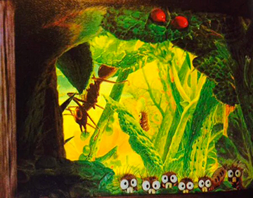 Le réalisateur a eu cette idée quand il était à l’école primaire. Alors qu’on lui enseignait le fonctionnement de la photosynthèse, il se demanda comment les plus petits insectes pouvaient la percevoir. Si une chenille pouvait voir les particules dans l’air, si les feuilles avaient un goût de gelée quand elle les grignotait. Ou encore, si de son point de vue, une abeille ressemblait à un drone survolant un champ de bataille.