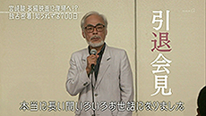« J’ai le sentiment que c’est bien fini. J’ai formé la génération suivante mais j’ai beau avoir essayé de laisser faire, finalement j’interviens et j’empêche la jeune génération d’éclore. Les talents à qui je voulais confier la relève m’ont tous quitté. Ce studio mange les gens (des images du « sans-visage » insatisfait du Voyage de Chihiro s’intercalent avec celle du réalisateur). J’en ai fini. Je n’ai aucun regret. »