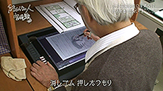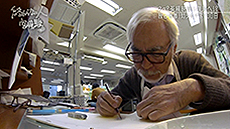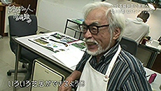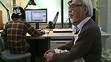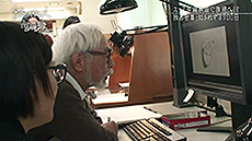Miyazaki n’a jamais approché un ordinateur mais aujourd’hui il s'installe devant une tablette graphique et un écran pour faire lui-même des retouches.