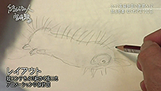 Quand Boro casse sa coquille, il y a quelques poils qui sortent. Miyazaki pense que l’idée est là mais que ce n’est pas encore convainquant. Il retouche la manière dont les poils sortent. C’est quelque chose de compliquer à expliquer, aussi il apporte lui-même des corrections.