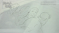 Plus tard, en petite équipe, Miyazaki regarde le linetest (animation brute) de son travail.