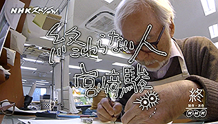 Le texte ci-dessous est tiré de l’émission de 50 minutes NHK Special: Owaranai Hito Miyazaki Hayao diffusée le 13 novembre 2016 sur la chaîne NHK. Pour celle-ci, le réalisateur a été suivi de manière étroite pendant 700 jours sur la production du court métrage Boro la chenille et sur son travail avec la 3D, jusqu’à sa décision de revenir au long métrage. Il a été filmé par la caméra du réalisateur Kaku Arakawa, autorisé depuis plusieurs années à suivre le studio Ghibli dans la création de ses films. C’est Chika Sakamoto, la voix de Mei dans Mon voisin Totoro et son sequel Mei et le chaton-bus, qui se charge de la narration.