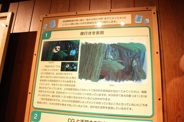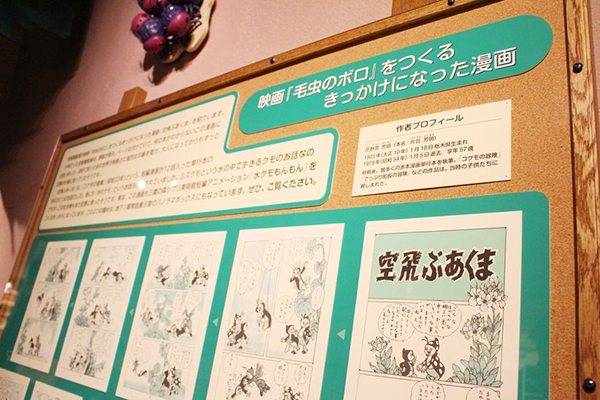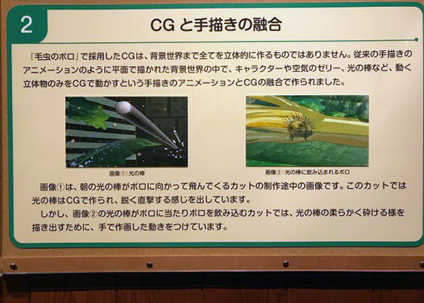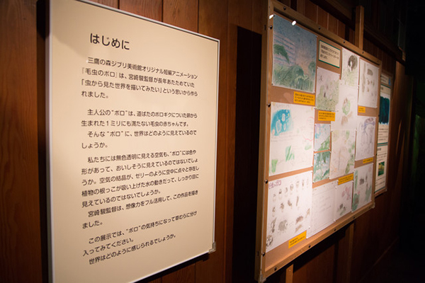 Le 21 mars 2018, premier jour de projection de Boro la chenille, une exposition temporaire consacrée au court métrage est également présentée aux visiteurs du musée Ghibli. Elle est conjointement proposée à l’exposition temporaire 2017/2018 Dessiner la nourriture, consacrée aux incroyables représentations graphiques culinaires dans les films du studio Ghibli.
