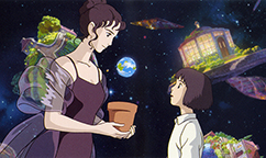 « Lorsque la lumière de la lune brille à travers la fenêtre, la planète commence à flotter hors du pot et à tournoyer. Elle grandit et révèle alors une sorte de genèse. La vapeur d'eau du vaporisateur de Nona finit par donner naissance à des nuages, et la pluie commence à tomber sur la petite planète. La foudre éclate dans les nuages, et la pluie qui tombe finit par recouvrir la moitié de la planète avec des océans. Nous observons la naissance de mers primitives sur une Terre recréée. La planète absorbe la terre dans le pot et devient progressivement de plus en plus grande. L’herbe recouvre les continents, et un cloporte, ancêtre de tout être vivant, commence à ramper. Le garçon prend une couverture dans la remise et regarde la planète se développer, tel le Créateur veillant sur le monde qu’Il a créé.