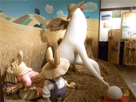 L’ambiance de ce diorama est cependant sereine et humoristique. Comme dans le film, M. Pâte a gardé sa touche élastique. Le blé récoltées par les lapins sont d’authentiques gerbes.
