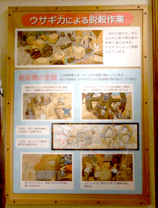 Affichage expliquant le travail du battage du blé (séparation des grains de l’épi) que l’on observe dans une scène du film.