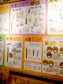 Affichage présentant de façon ludique les spécificités et les variétés de blé. D’authentiques gerbes de blé étaient également exposées.