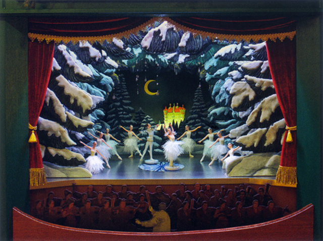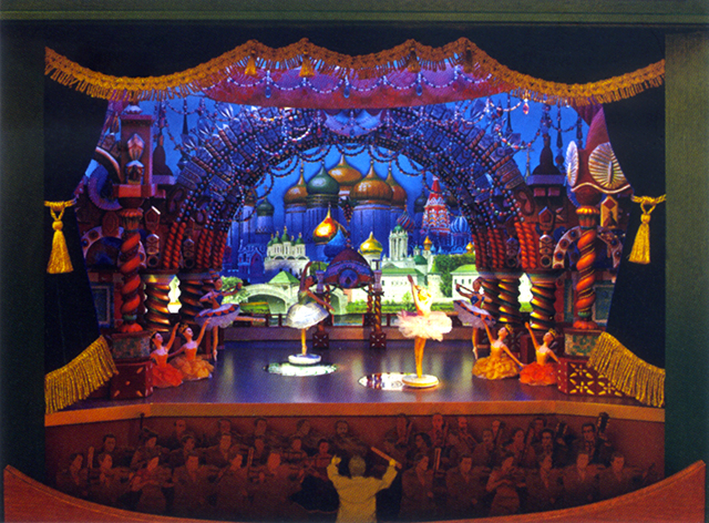 Cette installation était inspirée par le décor de théâtre de la première représentation de Casse-Noisette en 1892.