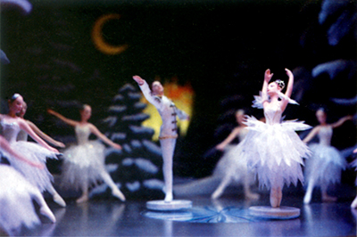 Les ballerines du théâtre de danse classique À l'intérieur de la forêt s’animaient cette fois sur la musique Valse des flocons de neige de Tchaïkovski.