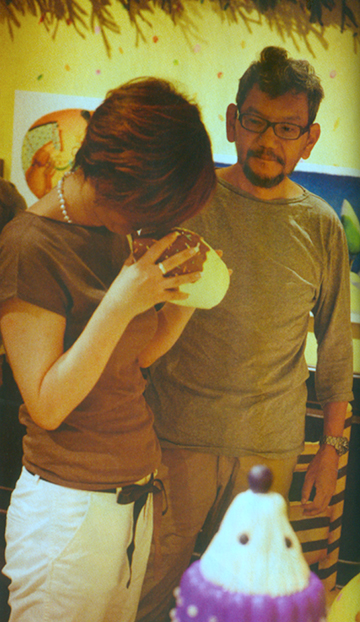 Moyoko et Hideaki Anno (Le vent se lève) en visite de l’exposition.
