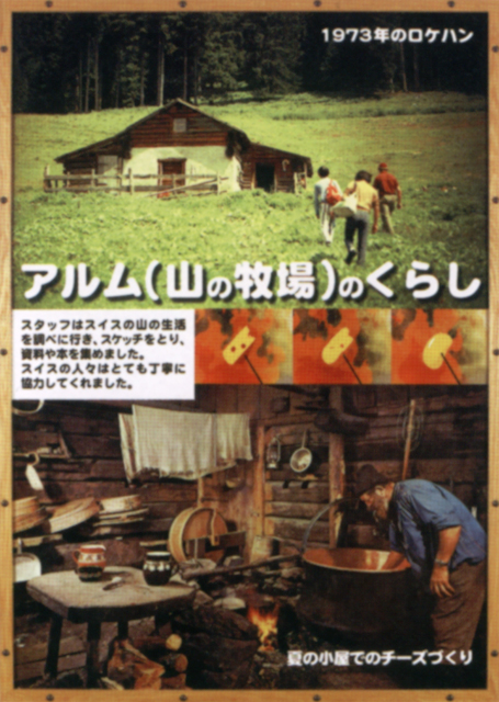Panneau titré « la fabrication du fromage ». Sur la photo du haut, on peut reconnaître un chalet quasiment identique à celui qui apparaît dans la série.