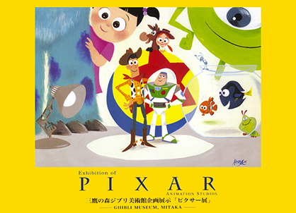 Entre mai 2004 et mai 2005, le musée Ghibli a accueilli une exposition temporaire consacrée au studio d’animation Pixar, célèbre pour ses films d'animation tels que la saga Toy Story, 1001 pattes, Monstres et Cie ou encore Le monde de Nemo.