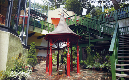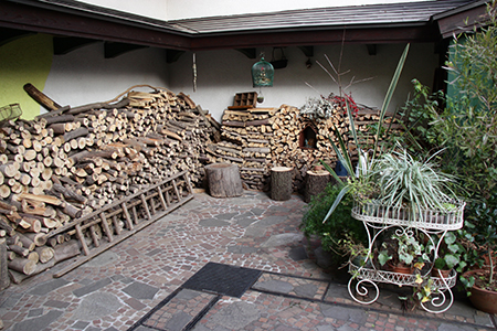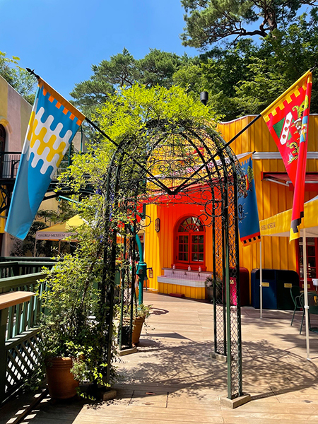 Le patio est un endroit qui tend a recréer une cour de maison d'Europe traditionnelle. Et il faut avouer que c'est très réussi, l'ambiance rappelant celle de Kiki, la petite sorcière. Tout y est : la pompe à eau, le tas de bois, l'appentis et les divers accessoires qui traînent un peu partout. On pourrait même dire que c'est si réussi que, si pour un Japonais ce lieu est très exotique ou romantique, pour les européens, c'est un lieu qui pourra peut-être paraitre plus banal.