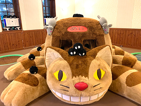 Dans cette salle se trouve un des fantasmes des fans du studio Ghibli : un Chat-bus grandeur nature (ou presque, celui proposé doit être à l'échelle 1/2). Les enfants sautent dessus avec une ardeur qui fait plaisir à voir (la peluche doit être recousue tous les soirs !). À ses pieds traînent des noiraudes que les enfants se lancent dans la joie et la bonne humeur.