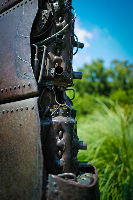 Derrière le robot, ce qui reste du pupitre de commande du château de l’île volante après sa destruction.