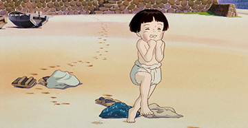 Yoshifumi Kondô y assure le Character Design et la direction de l'animation. L'ensemble du visuel du film (à l'exception des décors) relèvent donc du travail de Kondô qui a joué un rôle central dans la genèse graphique du film. Là encore, on retrouve ce sens du détail et de l'expressivité, notamment dans la recherche de réalisme des expressions des deux enfants. A travers le personnage de Setsuko, on comprend que Kondô a dû observer pendant des heures le comportement de jeunes enfants. Tout semble juste dans les attitudes et les traits de la fragile Setsuko, qu'il s'agisse des moments de joie, de peine, ou de souffrance.