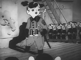 Je devais être en 1ere ou 2ᵉ année d’école élémentaire, une époque où le Japon était en guerre contre le Monde en général, et le film qui m’a le plus marqué dans mon enfance, c’était un film de propagande produit pour encourager l’effort de guerre et dresser la population contre l’ennemi. Je suis né à Taïwan, à une période où l’île était un territoire japonais annexé. Mon père m’a emmené voir ce film qui m’a marqué pour tout autre chose que ce message belliqueux. C’est vraiment le mouvement même des personnages qui m’a frappé. C’était un film en noir et blanc intitulé Les aigles de mer de Momotarô (Momotarô no Umiwashi, 1943), réalisé par Mitsuyo Seo. Un film qui met en scène Momotaro, un personnage des légendes japonaises, et ses sbires animaliers.