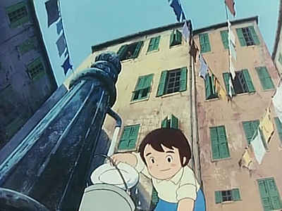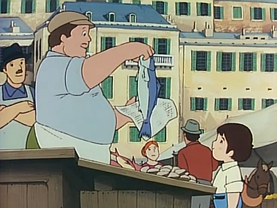 Le second épisode, intitulé Marco, jeune garçon génois, se déroule un an plus tard. Il y a un saut dans le temps qui permettra d’apprécier l’évolution du personnage de Marco entretemps. Ses rapports avec son environnement, l’école, ses parents, le rôle qu’il joue dans la communauté à laquelle il appartient, les rapports avec le courrier, les courses, la cuisine... C’est un épisode inépuisable. C’est quelque chose de vraiment miraculeux, qui relève non pas du dessin animé, mais vraiment du cinéma dans la manière de découper, et de ce qu’on raconte en un épisode. En une journée de vie, on donne à saisir un nombre étonnamment important d’aspects, d’éléments. Et nous essayerons d’en parler avec M. Kotabe ensuite.