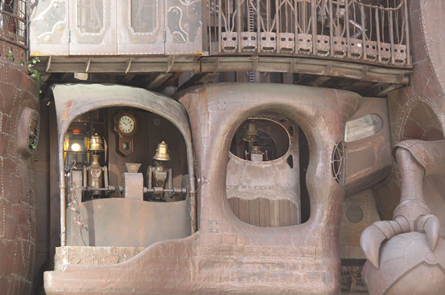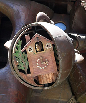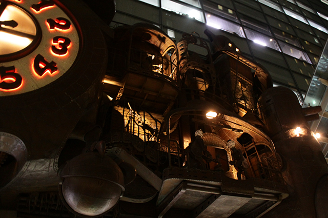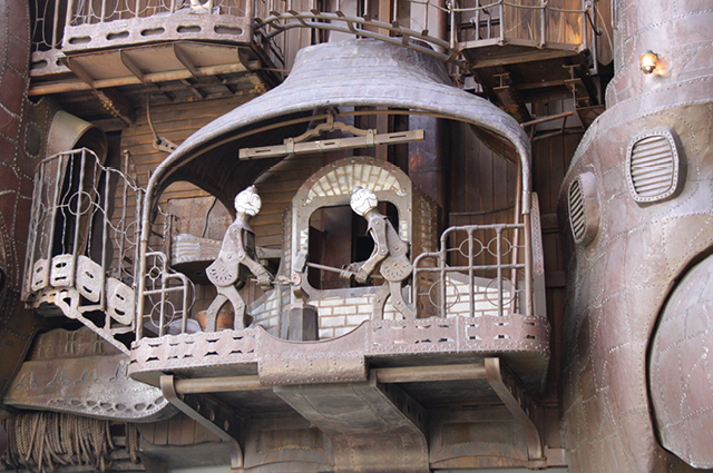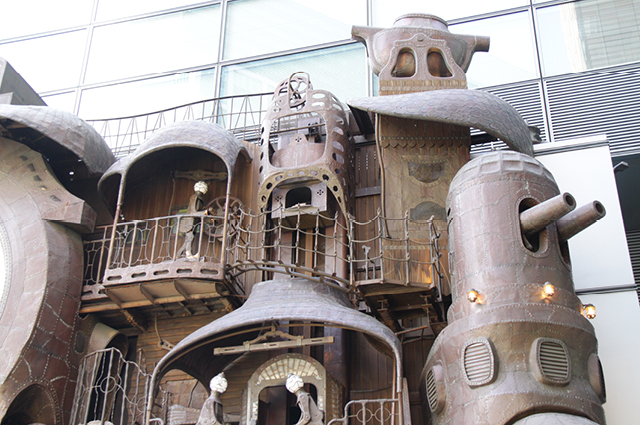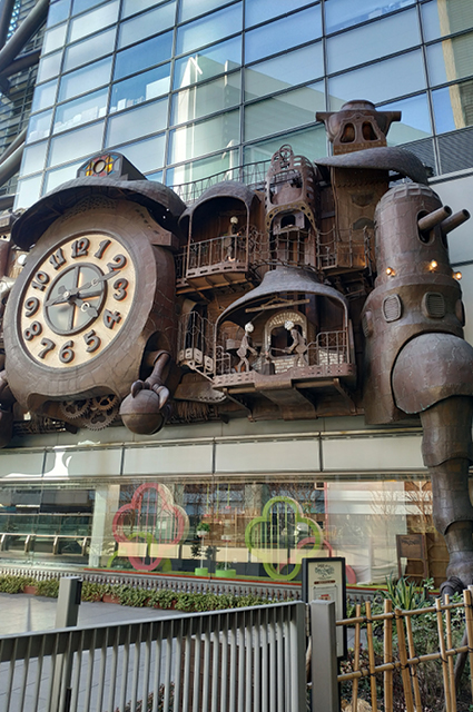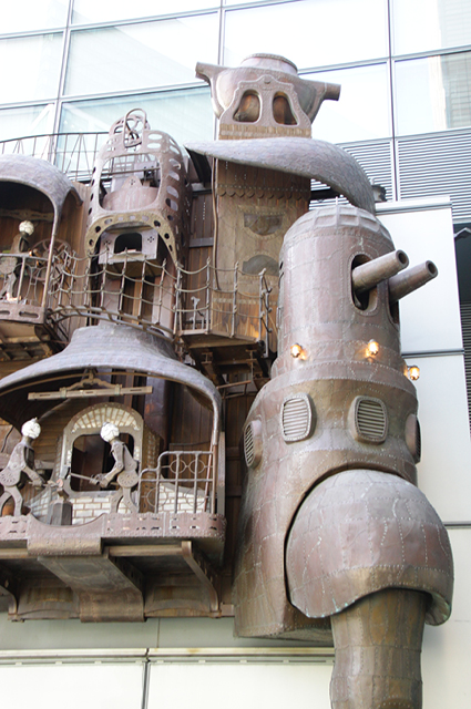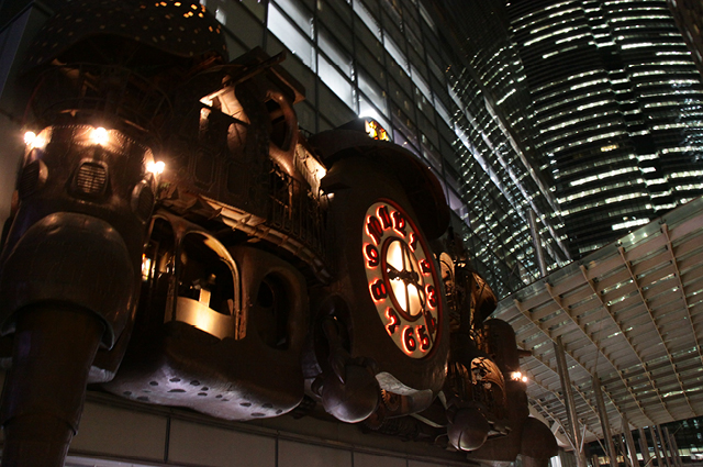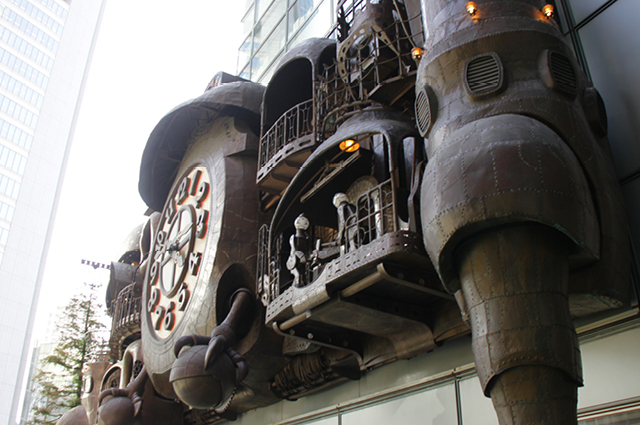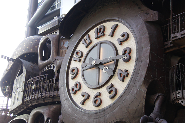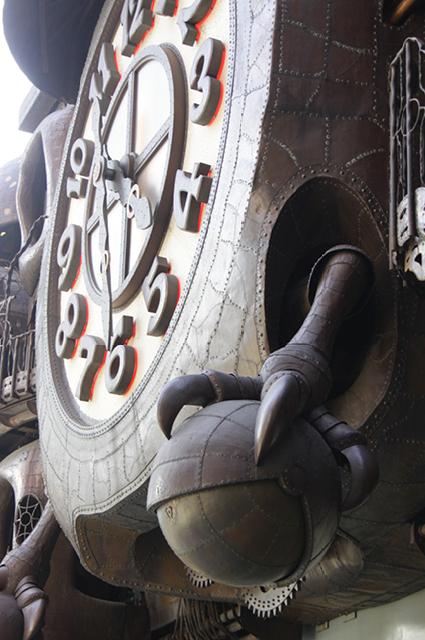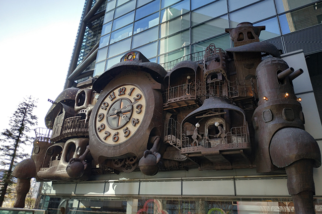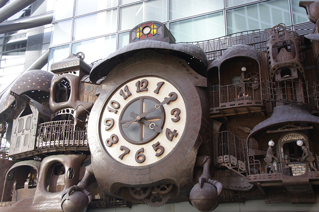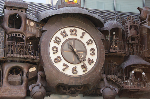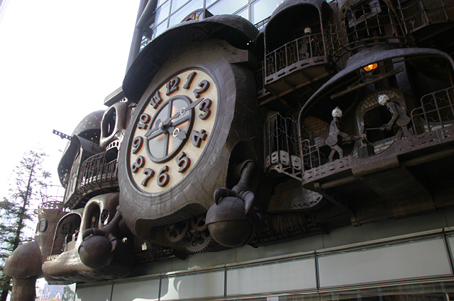 Au premier abord, cet immense édifice sur pâtes présente une parenté évidente avec le château ambulant du film du même nom. Cependant, le développement de l’horloge et celui du film se chevauchent. Dans les faits, il est difficile de savoir qui de l’horloge ou du château a inspiré le design de l’autre.