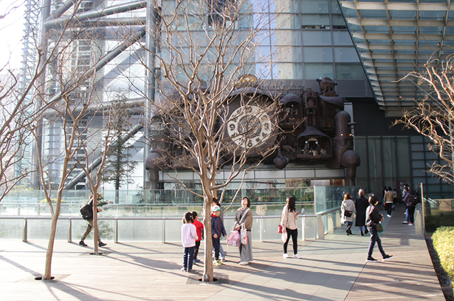 Située à l'extérieur du premier étage du siège de NTV, l’horloge peut être visitée 24 h / 24 et 7 j / 7 librement. Pour une première approche lors d’une visite, sachez que la grande horloge NTV est visible des trains de la ligne de métro automatique Yurikamome lorsqu’ils arrivent à la station Shiodome.