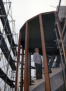 Hayao Miyazaki dans les travaux de construction de l’actuel bâtiment principal du studio Ghibli.